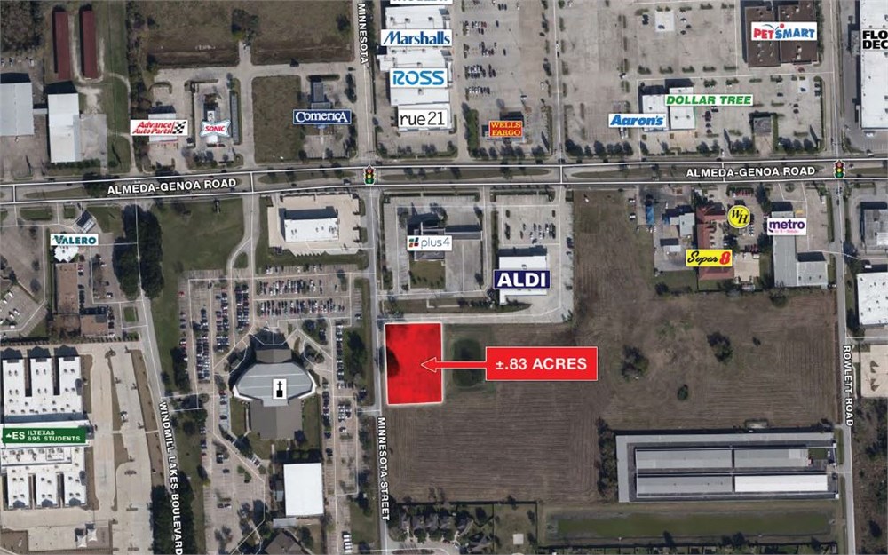 Almeda, according to the map or plat recorded in Film Code No. 663068 of the Harris County Map Records; Thence, South 02° 35’ 53” East - 350.47 feet with the West line of said Superior Plaza Almeda and with the East line of said Ceaser Moore Sr., Addition to a 5/8-inch iron rod with cap stamped “Bury & Assoc.” found for the Northeast corner and point of beginning of this tract; Thence, South 02° 35’ 53” East - 253.52 feet with the West line of said Superior Plaza Almeda and with the East line of said Ceaser Moore Sr., Addition to a 1/2-inch iron rod with cap stamped “Land-Tech” found for the Southeast corner of said Ceaser Moore Sr., Addition, for an interior corner of said Superior Plaza Almeda, and for the Southeast corner of this tract; Thence, South 85° 43’ 03” West - 320.51 feet with a North line of said Superior Plaza Almeda and with the South line of said Ceaser Moore Sr., Addition to a 1/2-inch iron rod with cap stamped “Land-Tech” found in the East right-of-way line of Minnesota Street (60 feet wide), according to the map or plat recorded in Volume 3, Page 32 of the Harris County Map Records for the Southwest corner of said Ceaser Moore Sr., Addition, for a Northwest corner of said Superior Plaza Almeda, and for a Southwest corner of this tract; from which a 5/8-inch iron rod