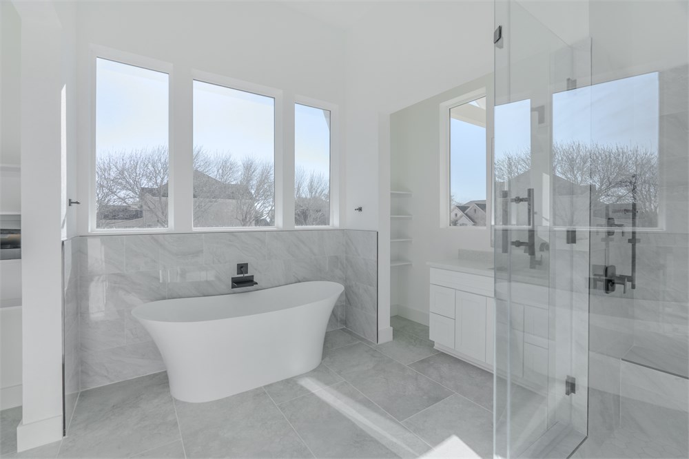 - Spa-inspired primary bath with luxury waterfall tub